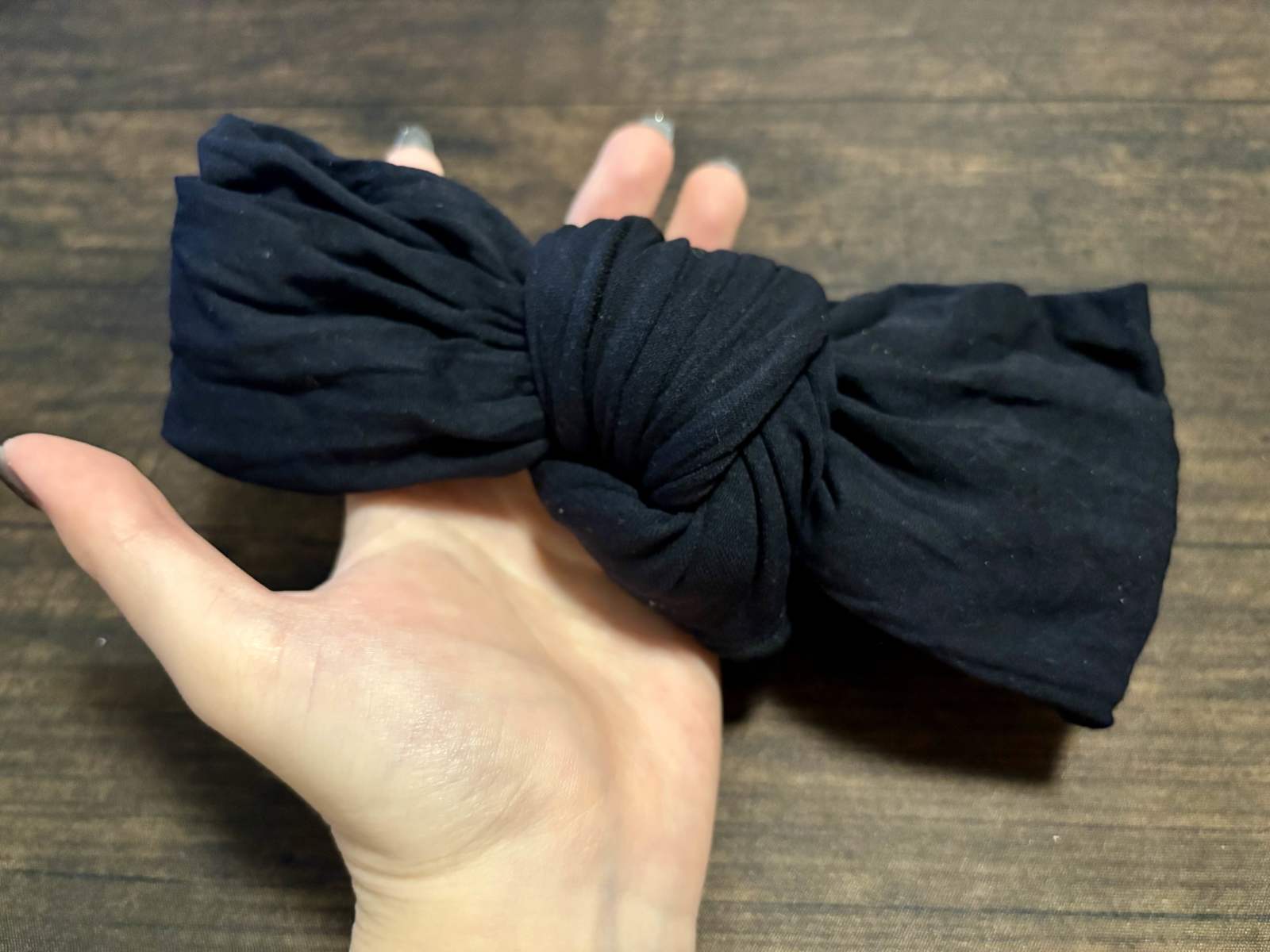 中央を軽く握り、残った部分を2周ほど巻きつけて結びます。