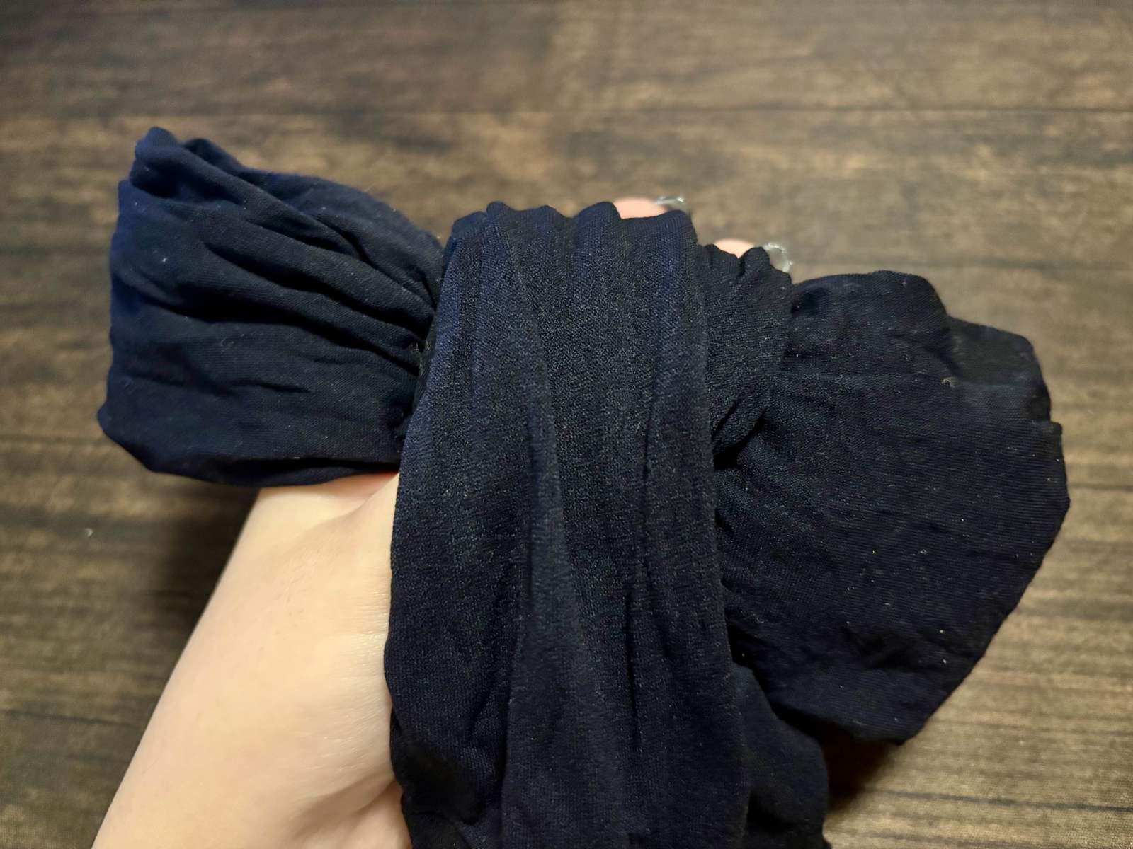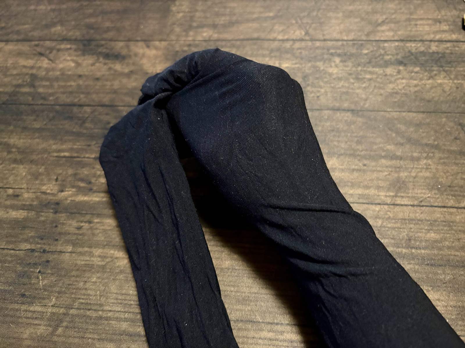 次に、ストッキングを全体の四分の一あたりで折り曲げます。