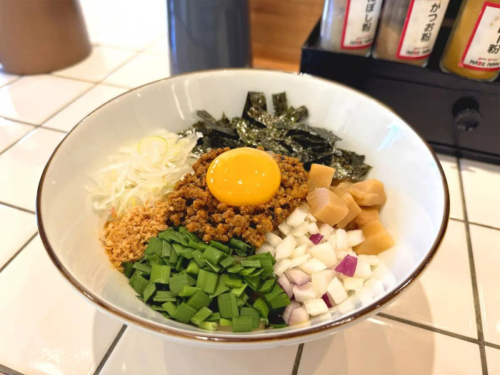 まず印象的なのは、コシのある特製中太麺。自社製の自家製麺で、油そば・まぜそばにぴったりの食べ応えと喉ごしを追求しており、麺を主役に十分楽しめるクオリティです。