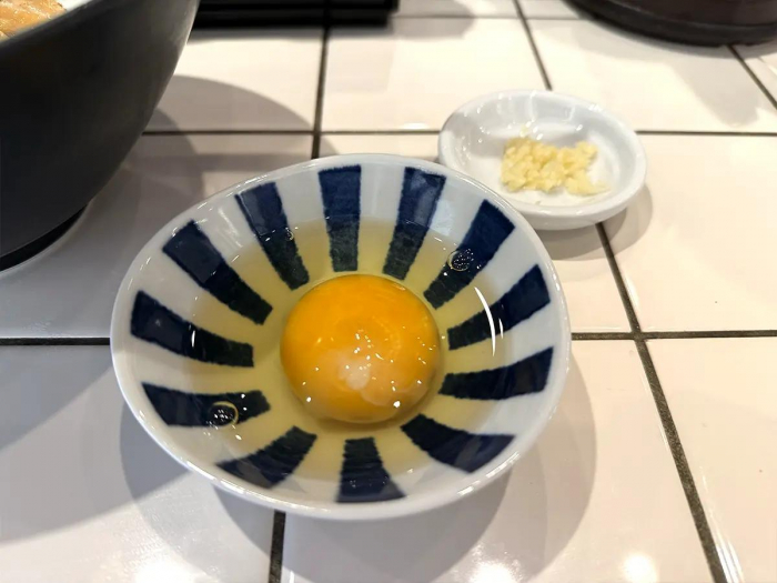 味変を重ねたあと、生卵を絡めればまろやかさがプラスされ、さらに刻みニンニクをひとさじ加えれば、やっぱりコレ!背徳感あふれるワイルドな味わいで、つい箸が止まらなくなります。