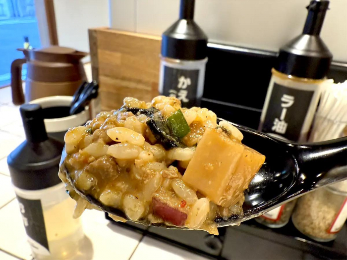 もちろん味変も楽しめます。意外な組み合わせはカレー。途中で加えると、まるでもう一杯注文したかのような別物の味わいに。