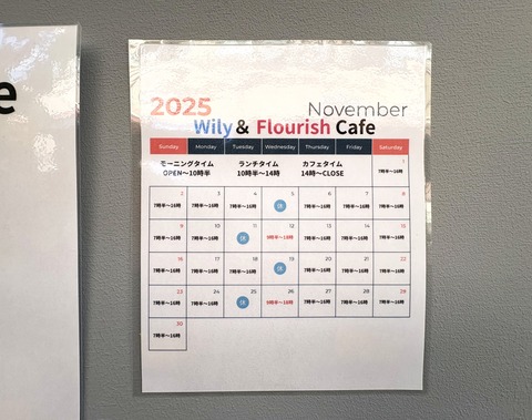 『Wily&Flourish』となっています。「Flourish」といえば、清荒神市場にあるベーカリーで、こちらのお店も先日コミパ通信で“おためしパン”情報をお届けしたところですよね。