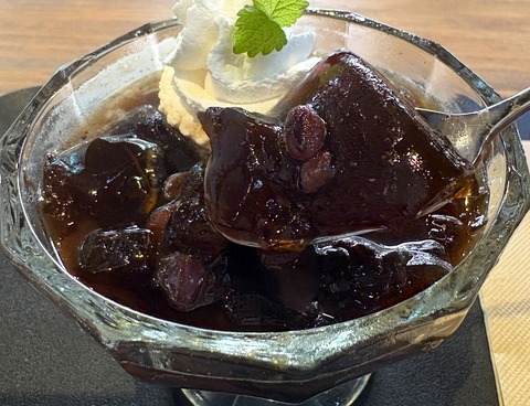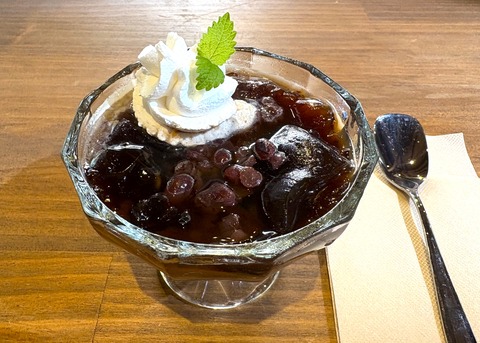 ほろ苦いコーヒーゼリーと優しい甘さの小豆がとってもよく合っていて大人のデザートといった味わい(もちろんお子様でもオーダーできますよ!)。
