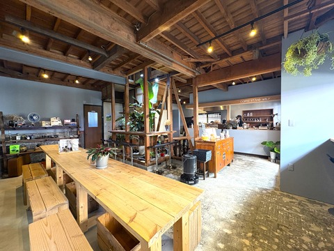 お店の中は「Coffee Stand Wily」の状態をほぼキープしていてグリーンや木の質感を生かしたテーブル、アンティークな什器もそのままです。