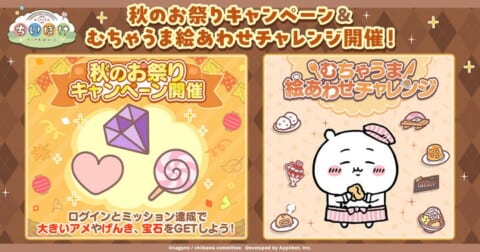 株式会社アプリボットが企画・制作・開発・運営を行うスマートフォンアプリ『ちいかわぽけっと』(以下、『ちいぽけ』)は、本日2025年11月18日(火)より、「秋のお祭り」キャンペーンを3つ実施します。また、『ちいぽけ』公式Xでは、キャンペーンと連動したチャレンジ企画も開催されます。