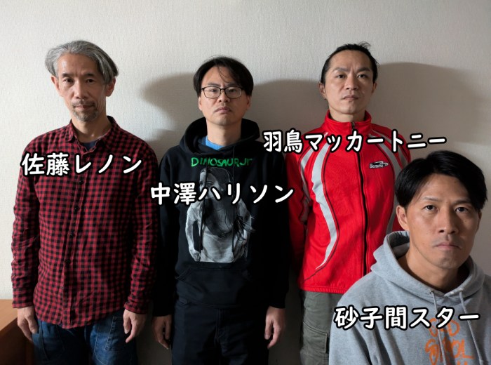 これを再現するために、編集部にいたメンバーを招集。私、佐藤レノンを筆頭に、中澤ハリソン・羽鳥マッカートニー・砂子間スターの4人で撮影に臨むことにした。