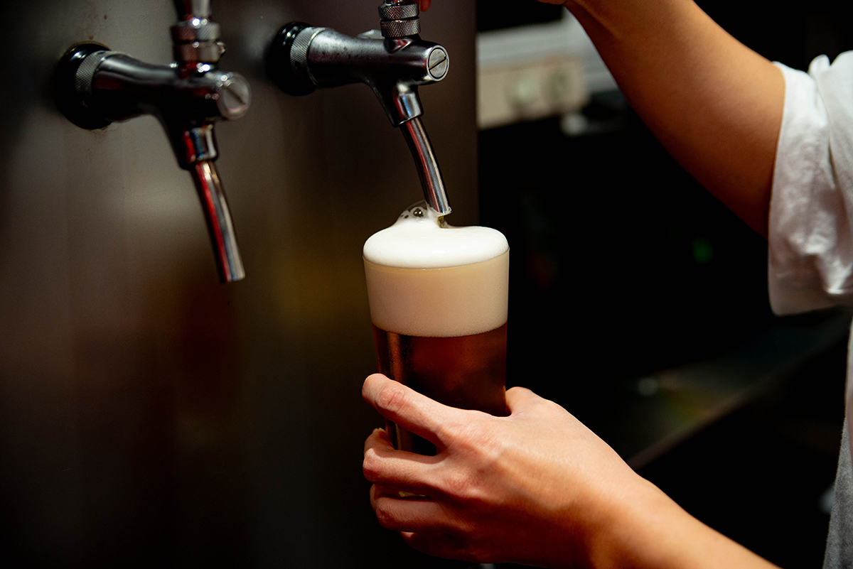 「宇宙ビール」や宮崎の栗を使った黒ビール「栗黒」など、行くたびに新しい味に出会えるのが魅力です。さらに、知る人ぞ知るサッポロのプレミアムピルスナー「エーデルピルス」は、通好みの一杯。3回に分けて注ぐ「3段つぎ」で仕上げる泡はスフレのように柔らかく、香りと口当たりが格別。そのほか、日本酒や静岡茶を使ったお茶割り、元バーテンダーの飯塚さんが作るハイボールも人気。「びっくりするほど美味しい!」とファンが増え続けています。