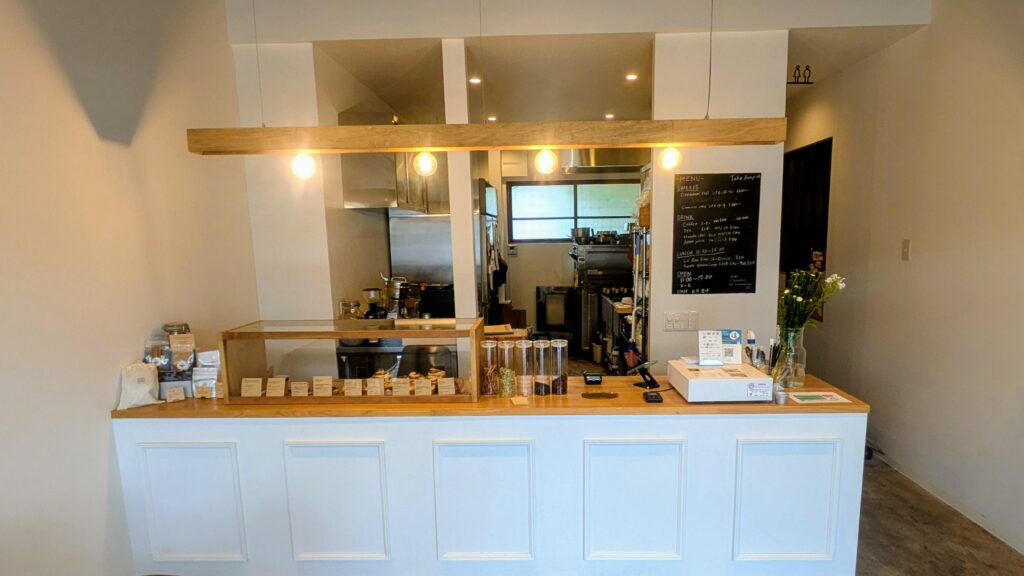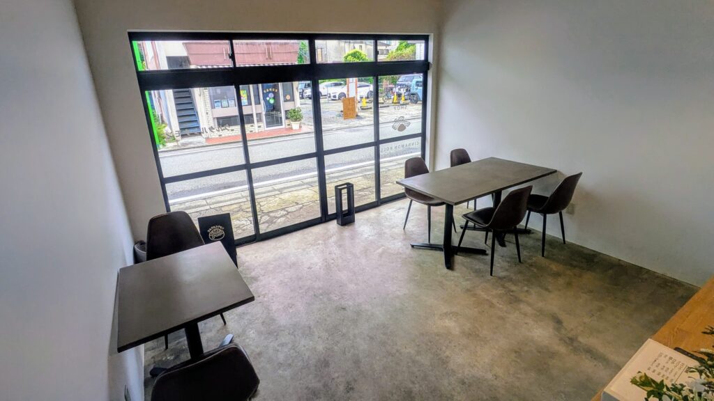 イートインスペースには、4人掛けのテーブルが1卓、2人掛けのテーブルが1卓あり、お子さま連れから年配の方まで幅広い世代のお客さんが訪れます。ひとりでのんびり過ごすのはもちろん、友人や家族とのお茶時間にもぴったりの空間です。