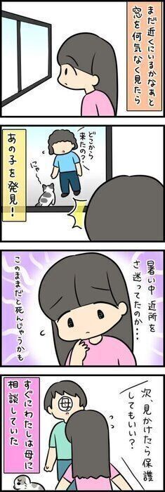 でもご近所の方にもにゃーにゃー鳴いている姿を見て、まるで助けを求めているように見えたんです。
