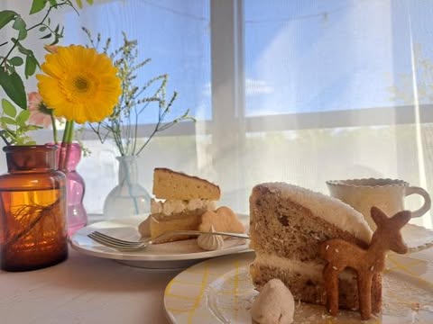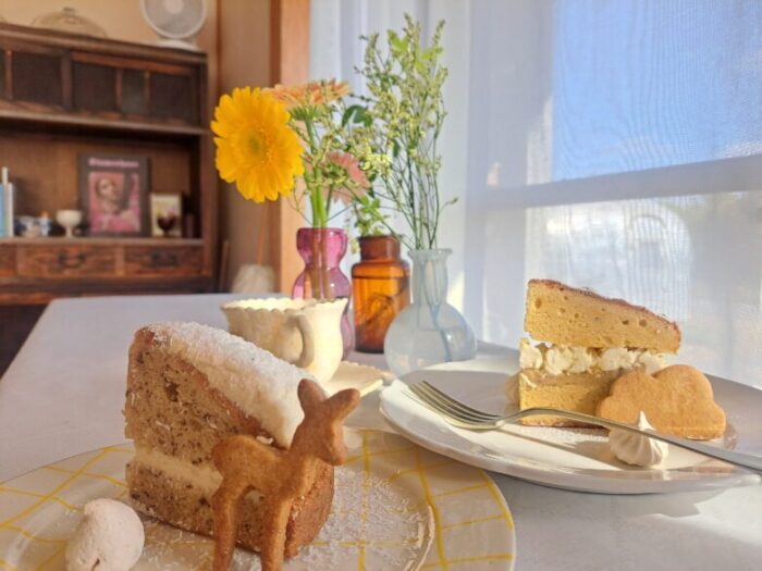 ケーキに添えられた小鹿のクッキーも手作りで香ばしくてサクサク。