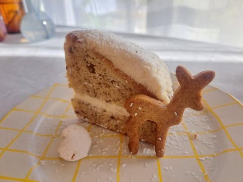 白いクリームに小鹿のクッキーがついていて、雪山にいる小鹿のようで可愛いです。 バナナケーキは「他のお店にはないケーキ」と店主の一押しなんですよ。