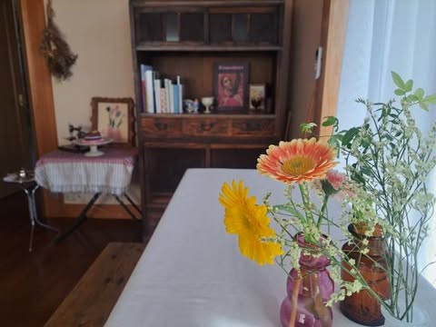 雰囲気はナチュラルカントリー風ですが家具や雑貨はアンティーク調もあり落ち着きます。 もともとは「ADU-kitchen」というお菓子の料理教室の先生のアトリエだそうですが、その料理教室に生徒として通われていたBambiの店主がこちらで現在はカフェをしています。 (料理教室は現在場所を合志市に移して月に1回ほどされているそうです。)