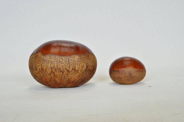 「しまんと地栗」は過去最大87g(2023年)を記録、全国平均サイズ一粒20~25g(写真右)に比べると大きくて甘い。