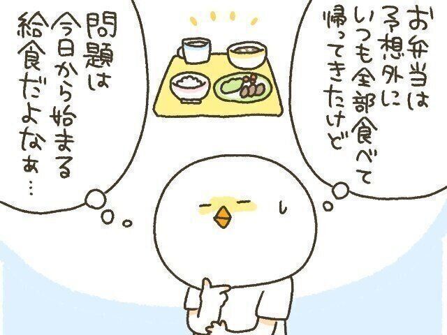 給食は、家では出ないようなメニューも出るし、味付けも違うし、きっと量も普段より多いだろうから、あまり…というか、ほとんど食べないんだろうなぁ。