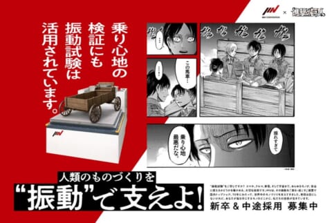 内容: 「もしも進撃の世界に振動試験があったなら」をテーマにした12種の広告ビジュアルを公開。
