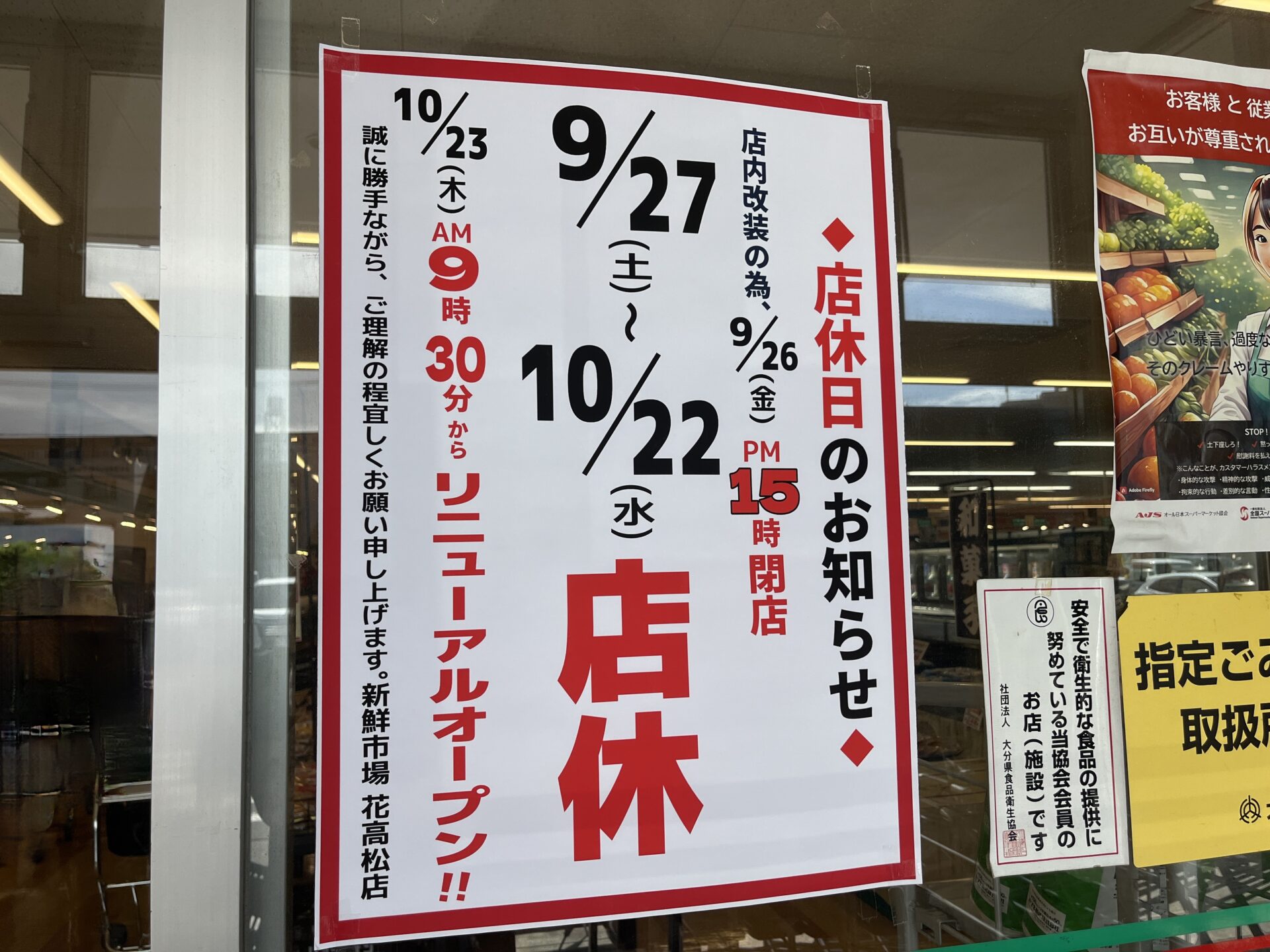 大分市『新鮮市場 花高松店』が一時閉店するみたい