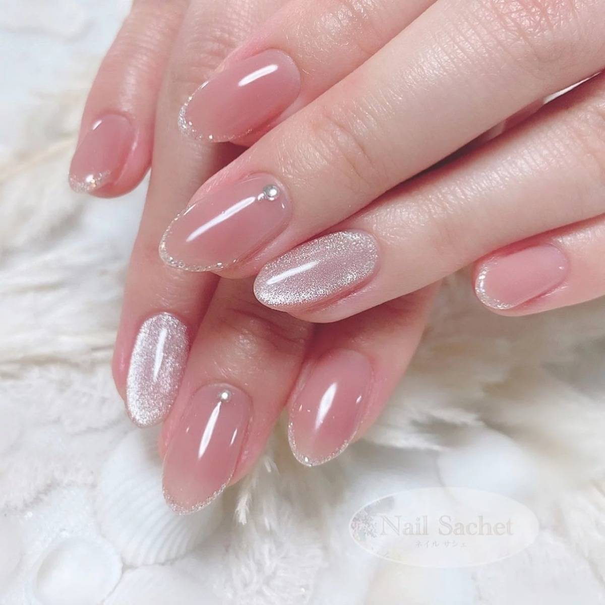 ちゅるんとした仕上がりを求めるなら、ワンポイントにマグネットネイルを入れるのもおすすめです。