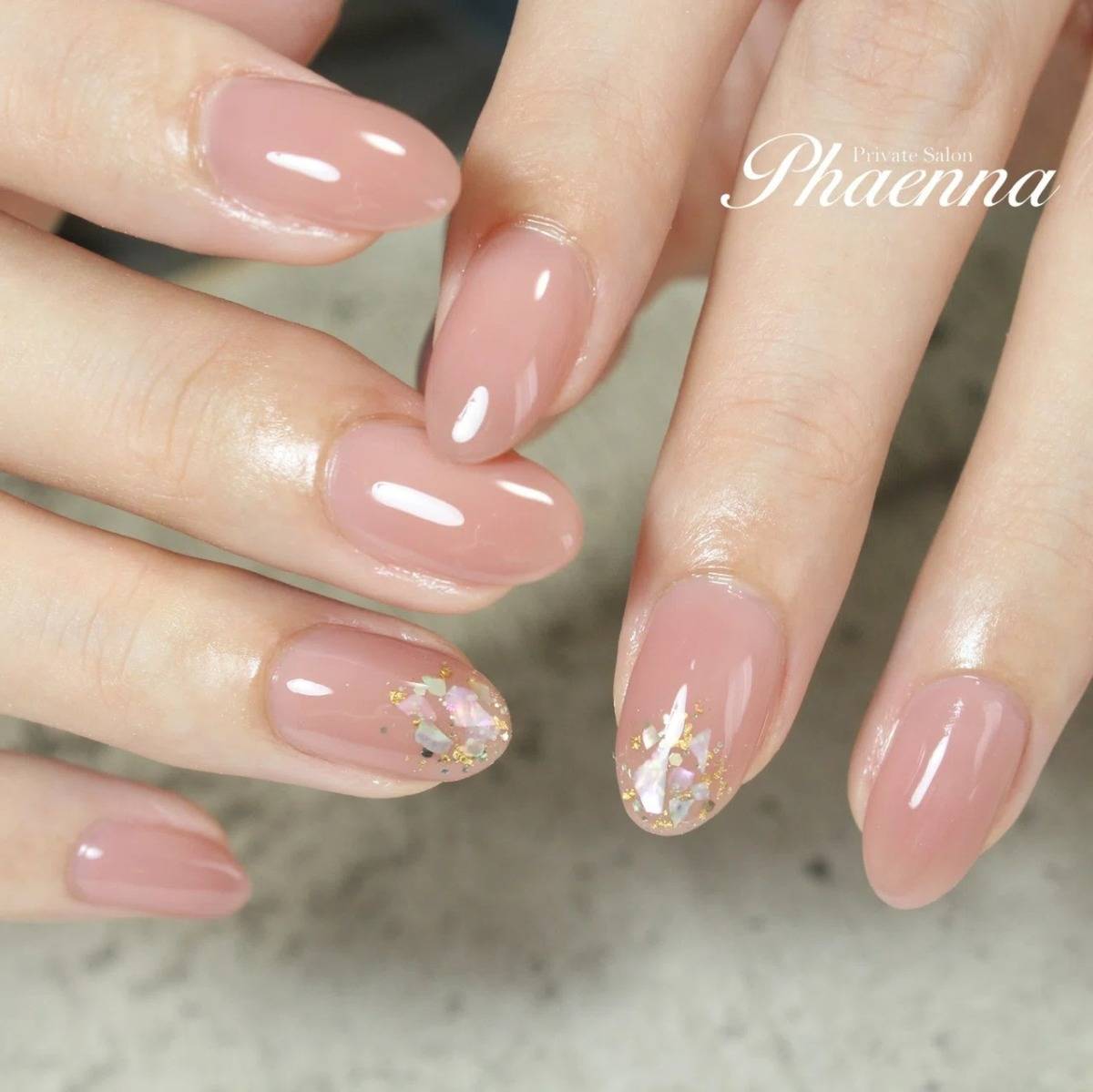 【初秋編】色気のあるネイル▶︎ワンカラーネイルにシェルを