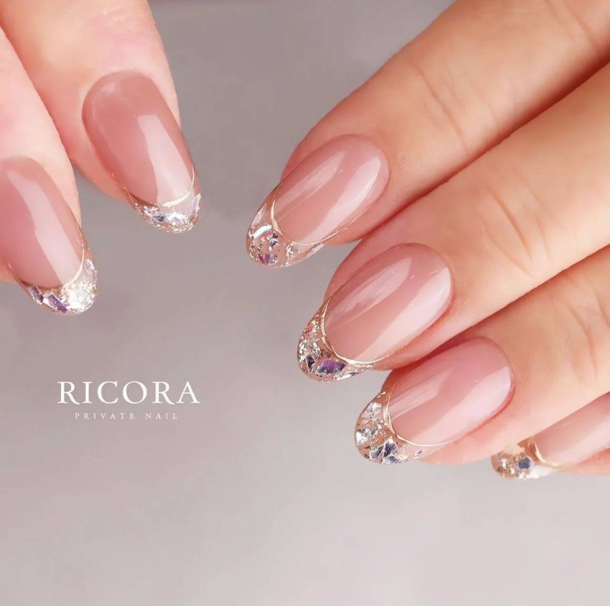 オフィスでも浮かない、きらっと輝く愛されネイルに仕上がります。