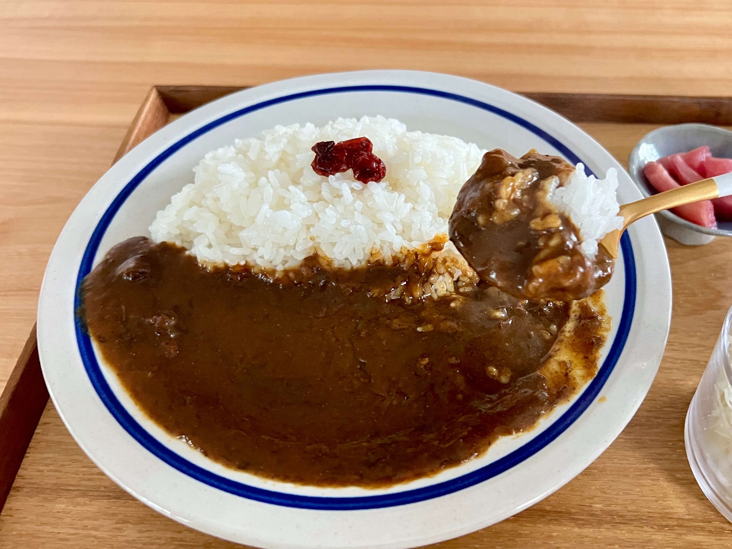 シンプルなルーとライスに、この薬味を合わせながら食べ進めていくと、最後まで飽きずに山盛りのカレーライスを完食できます。