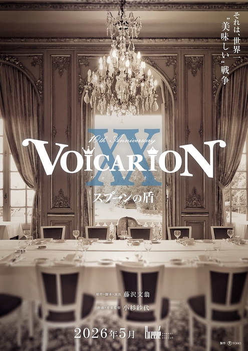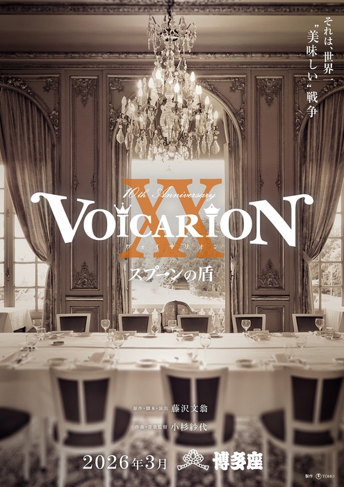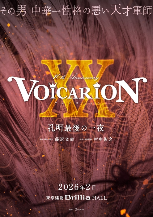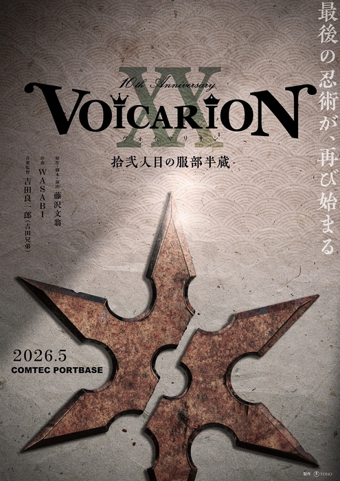 今回、2026年に迎える『VOICARION』10周年を記念して、これまでに上演した全9作品の内、7作品を一挙上演する10周年記念公演が決定。2月に東京・東京建物Brillia HALLを皮切りに『信長の犬』『孔明最後の一夜』、3月福岡・博多座では『スプーンの盾』、4月東京・シアタークリエでは『女王がいた客室』『龍馬のくつ』『GHOST CLUB』、5月愛知・COMTEC PORTBASEでは『拾弐人目の服部半蔵』、5月大阪・サンケイホールブリーゼでは『スプーンの盾』と、全国5会場で各作品を上演する。