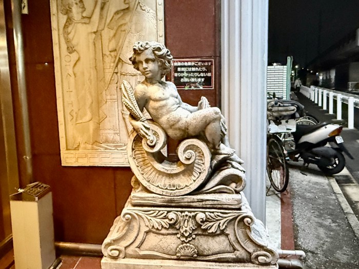 今回は、そんなジートピアに宿泊してきた。エントランスから浴場に至るまで、昭和レトロな雰囲気と謎の天使や女神像が同居する異世界が広がっている……歴史ある施設ならではの魅力を味わいまくってきたのでレポートしたい。