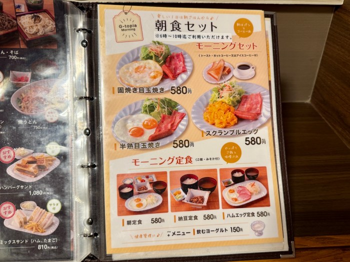 翌朝は3階のレストランで朝定食(580円)を注文。朝風呂の後だからしっかり目に食べたいぞ。
