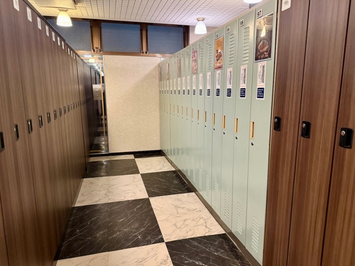 さて、ロッカーキーと館内着・タオル(大1枚・小2枚)を受け取ったらロッカーへ。荷物をロッカーに預けて、館内着に着替えたらもう自由だ。
