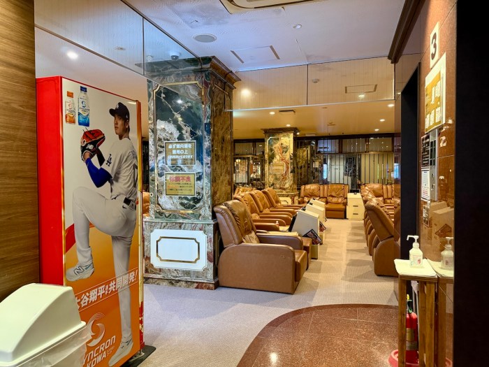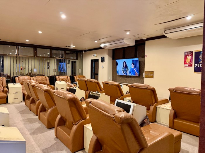 お風呂上がりに館内を見学。3階にはリクライニングスペースやレストランがある。