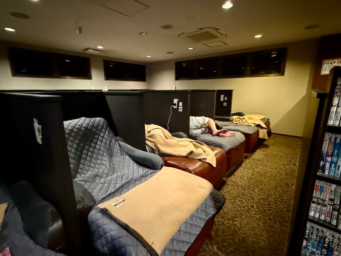 カプセルより安いリラックスルーム(フラットなソファ席)で横になる人が多いからなのか、カプセルエリアは空いていて静か。