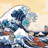 着物の文様や北欧のテキスタイルのようにデザイン性が高い絵の数々は、海の波や水の波紋、水面にはった氷などを抽象化することで生まれました。「いったいどうして急に変わったんだろう?」と気になった方もいると思いますが、これは写生を重ねて対象を研究した結果だと言われています。