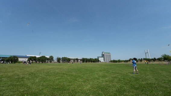 フカフカ芝生と気持ちのいい大空の下での凧揚げ