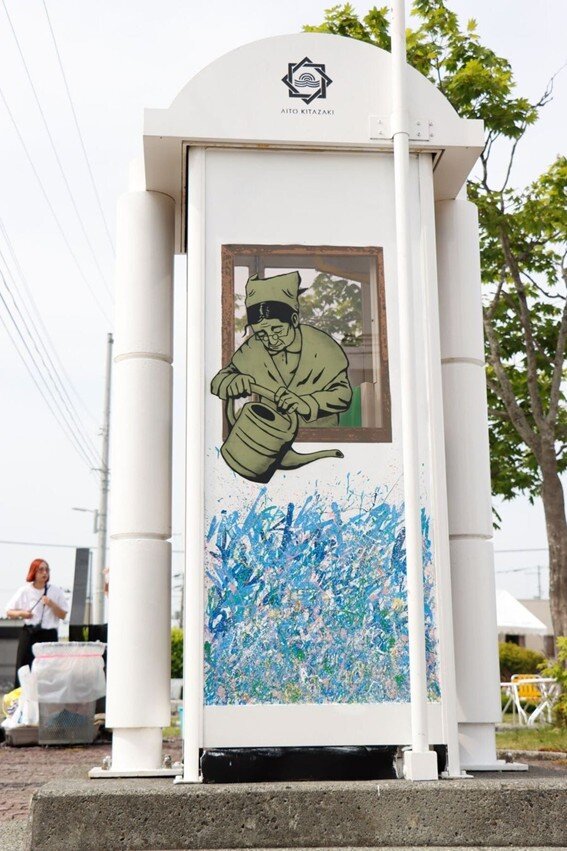 「空のまち」新篠津村の芸術はストリート(青空)アート。自然風景が素晴らしい新篠津村は街中の景観にも力を入れております。2023年から地域おこし協力隊の企画でスタートした事業で、毎年著名なストリートアーティストや壁画家を招聘し、村のメインストリートの電話ボックスや農業倉庫に壁画を制作。2025年には北海道最大級となる作品が自治センターに完成(作:Kensuke Takahashi/共催:JAPAN AX PROJECT株式会社)。10年後はハワイのカカアコ地区のような世界中のストリートアートを集めた通りになるかもしれません。