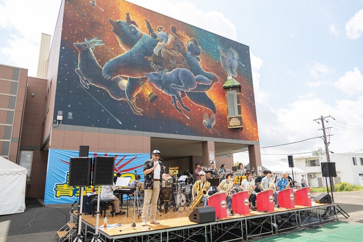1979年に第1回がスタートした、新篠津村自治センター駐車場で開催される村最大の祭りです。自治センターの壁に描かれた北海道最大級の巨大壁画(2025年壁画家Kensuke Takahashi作)の前で繰り広げられる様々なステージメインイベントの他、気球体験等「空のまち」ならではの体験や街馬車等様々な体験ができます。メインイベントは道内有数の巨大な山車パレード。宝船やねぶた絵、巨大魚の姿を彩った山車がメインストリートを練り歩き、花火が祭りの最後を締めます。