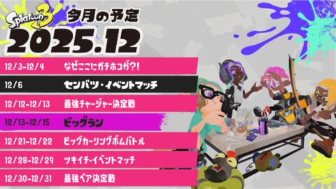 2025年12月1日(月)からスタートした『スプラトゥーン3』シーズン14「2025冬 Chill Season」について、開催予定イベントなどシーズンに関する情報をまとめています。