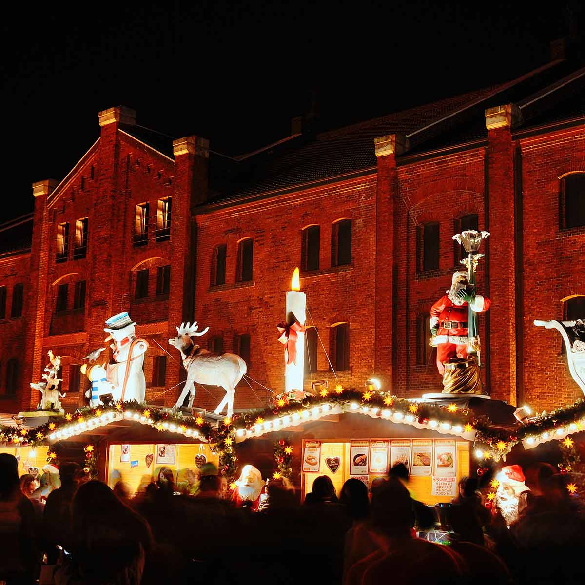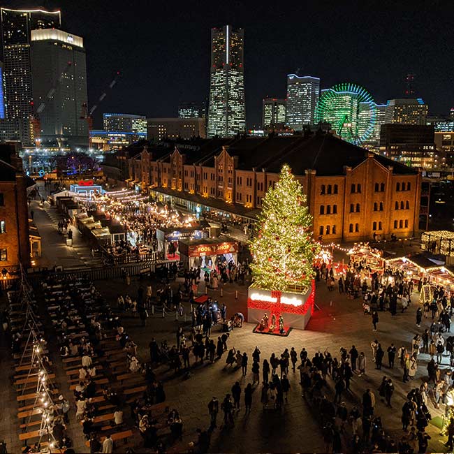 歴史ある横浜赤レンガ倉庫を彩るクリスマスの装飾、港町ならではの海景、みなとみらいの近代的な街並みが相まって、特別なひとときを過ごせるはず。