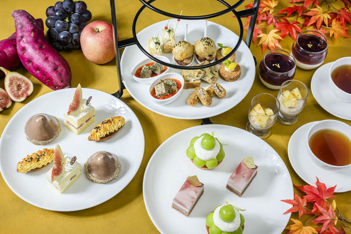 「収穫祭」をテーマに、さつまいも・栗・無花果・シャインマスカットなど秋の果実を贅沢に使用した華やかなスイーツが揃います。