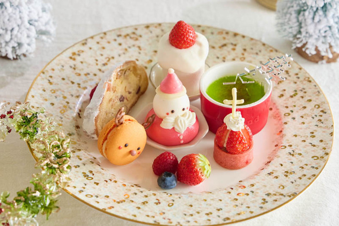 クリスマスモチーフのスイーツを盛り込んだ、見ているだけで心が躍る華やかさ一皿。