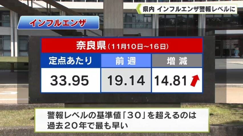 県では、10月30日に流行注意報を発令。第44週には全国で2番目に多い「28・47」と報告され、警報レベル「30」に迫っている。