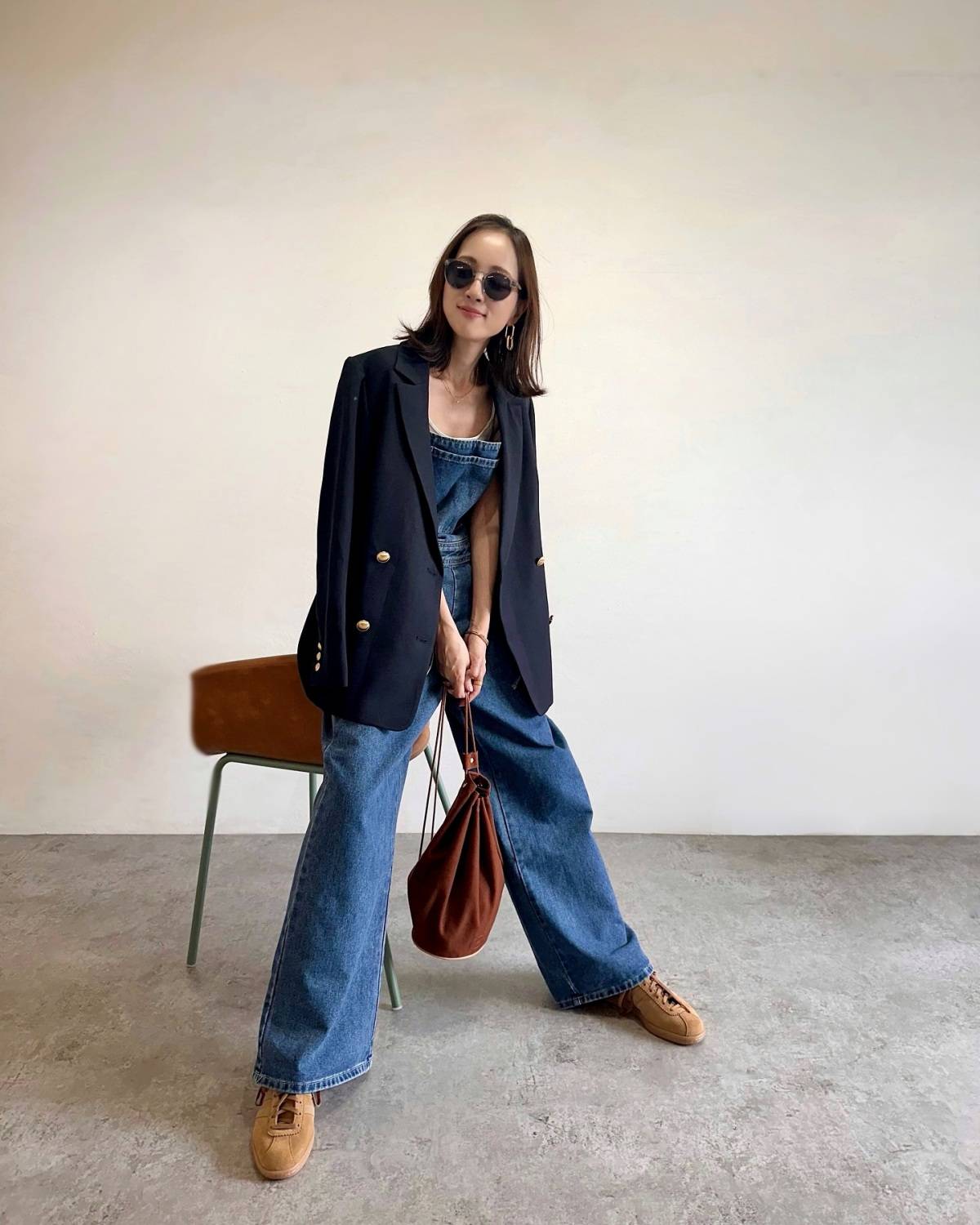 おしゃれ上級者見えするデニムのオールインワンは、上からジャケットを羽織ると11月の気候によく似合います♪