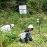 まず、袋の上部を平らにします。その後、写真のように左右の角を中心に向かって三角形に折り曲げます。鋭角気味に折り曲げた方が、その後の作業がしやすいです。