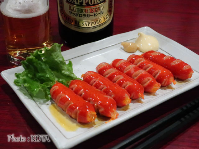 同店の赤い、いや、タコさんウインナーは、フライパンで炒めるのでなく、さっと素揚げした感じ。
