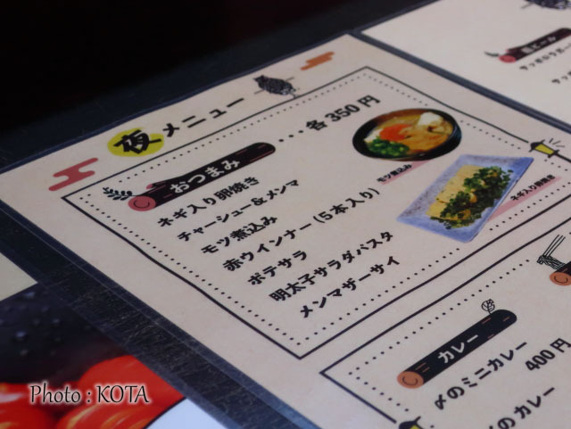 普段はランチタイムだけの営業。日替わりで定食やカレー、ラーメンを提供しつつ、週3日だけ夕刻から飲み屋になるというお店。
