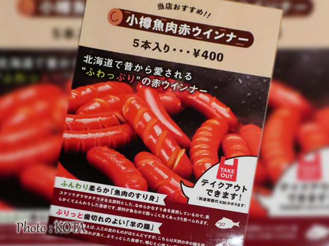これ、小樽の市場にある魚屋さんが作る、知る人ぞ知る赤ウインナー。