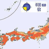 日付が変わると日本海側から雨の範囲が一気に広がります。日本海側北部を中心に激しい雨による土砂災害や道路の冠水、川の増水に注意して下さい。