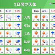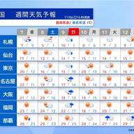 木曜から土曜にかけては晴れますが、気温は平年並みに戻り、朝晩は一ケタ、昼間も20度に届かないでしょう。寒暖差による体調管理に気を付けて下さい。