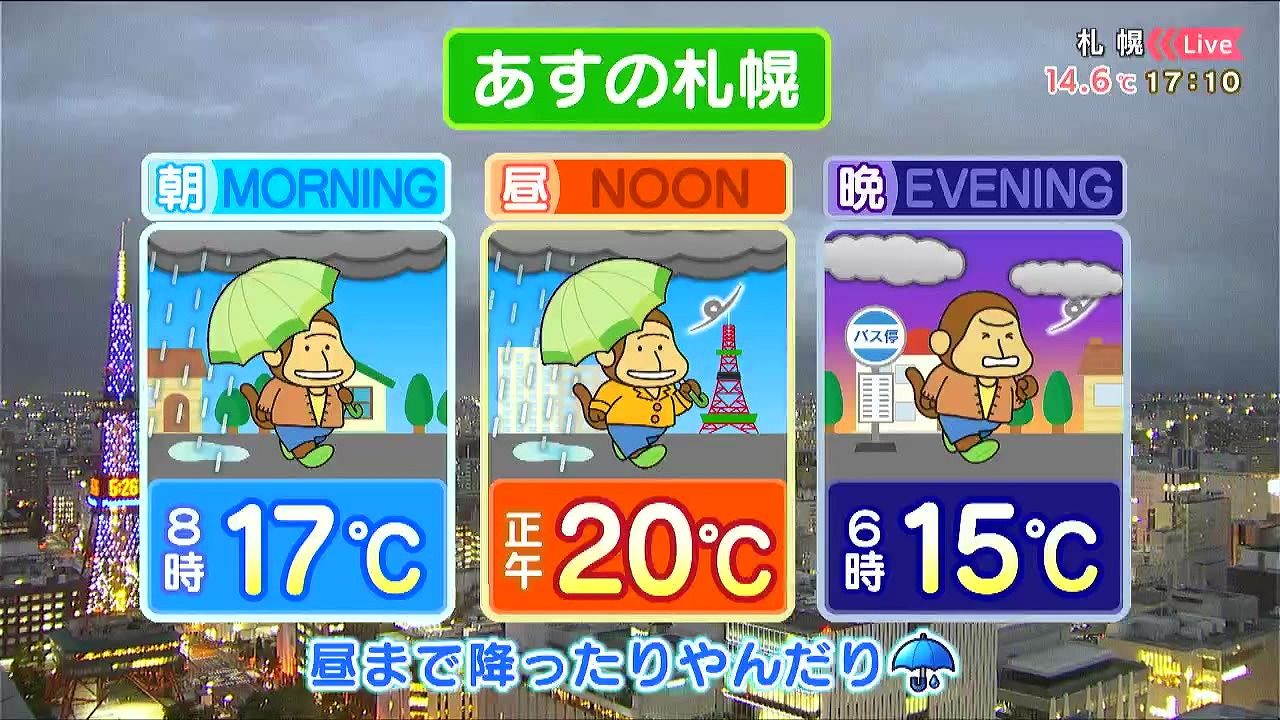 あす8日(水)の札幌です!朝昼晩の天気をもんすけでお伝えします!