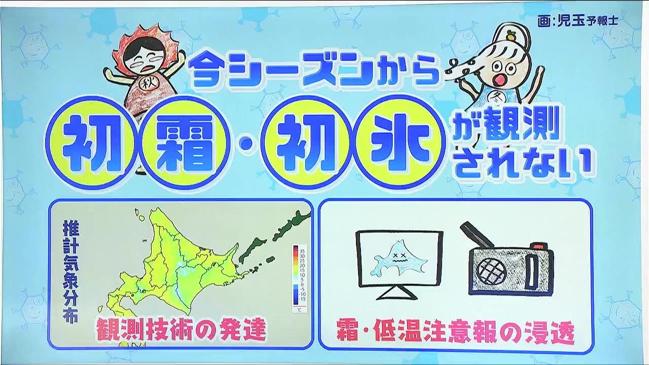 一つは観測技術の発達です。こちらは推計気象分布といって、検索して見ることもできます。アメダスのデータなどを基に、アメダスのない地域でもおおよその気温が分かるものなんです。これによって、気象台が発表しなくても霜がおりる、氷が張るような寒さになっているということが確認できます。また、霜注意報や水道凍結などの注意を呼び掛ける低温注意報も浸透してきたことも理由の一つです。