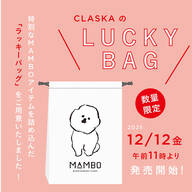 クラスカは、人気オリジナルキャラクター・MAMBO(マンボ)の特別なアイテムを詰め込んだ「MAMBO LUCKY BAG」を、2025年12月12日(金)午前11時より、CLASKA ONLINE SHOPで数量限定販売します。価格は5,500円(税込)です。