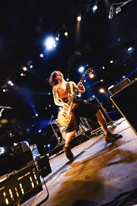 戸高と細美の六弦がダーティーにしなる「Run Run」、スコット・マーフィー(Ba.Cho)のボーカリゼーションが牽引する「Roxette」で顕示されたのは、2つの声がぶつかり、共存することで生成されるカタルシスだった。一瀬正和(Dr)が刻むハリの良いビート然り、足元から込み上げてくる重低音然り、MONOEYESのサウンドスケープはロイヤルな重厚感と不可分であるが、細美とスコットの歌唱がミックスされることによって、直感的かつ肉体的な快楽を提供するのだろう。